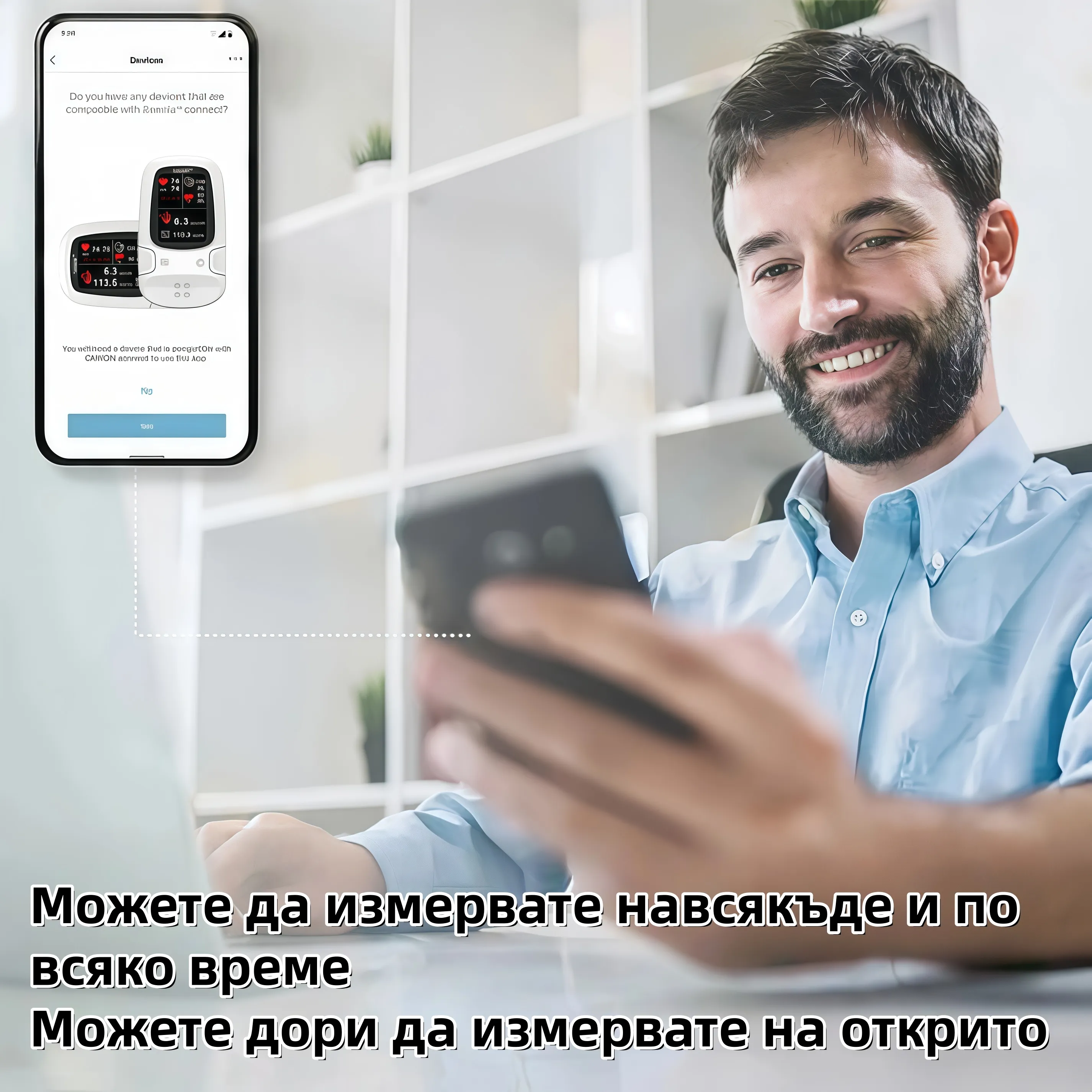 ✅ Връзка с мобилно приложение: синхронизиране на данни, дистанционно наблюдение за членове на семейството, дългосрочна подкрепа за лечение